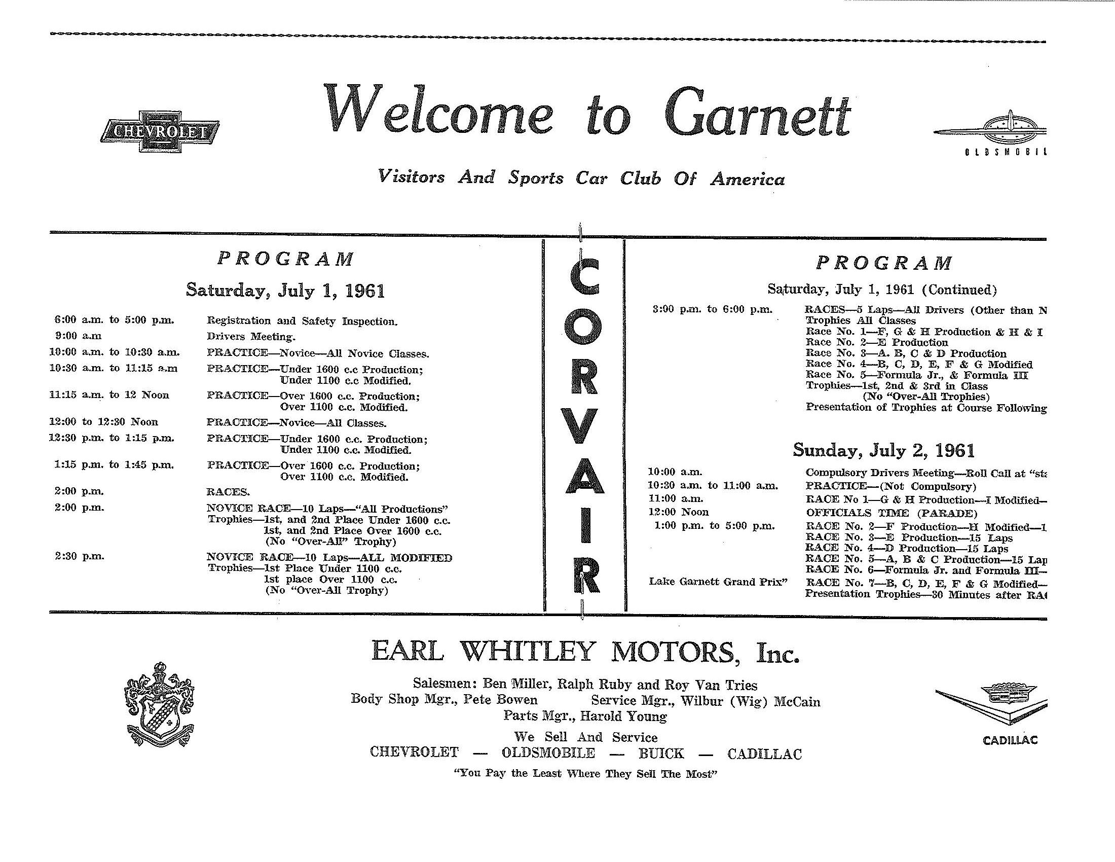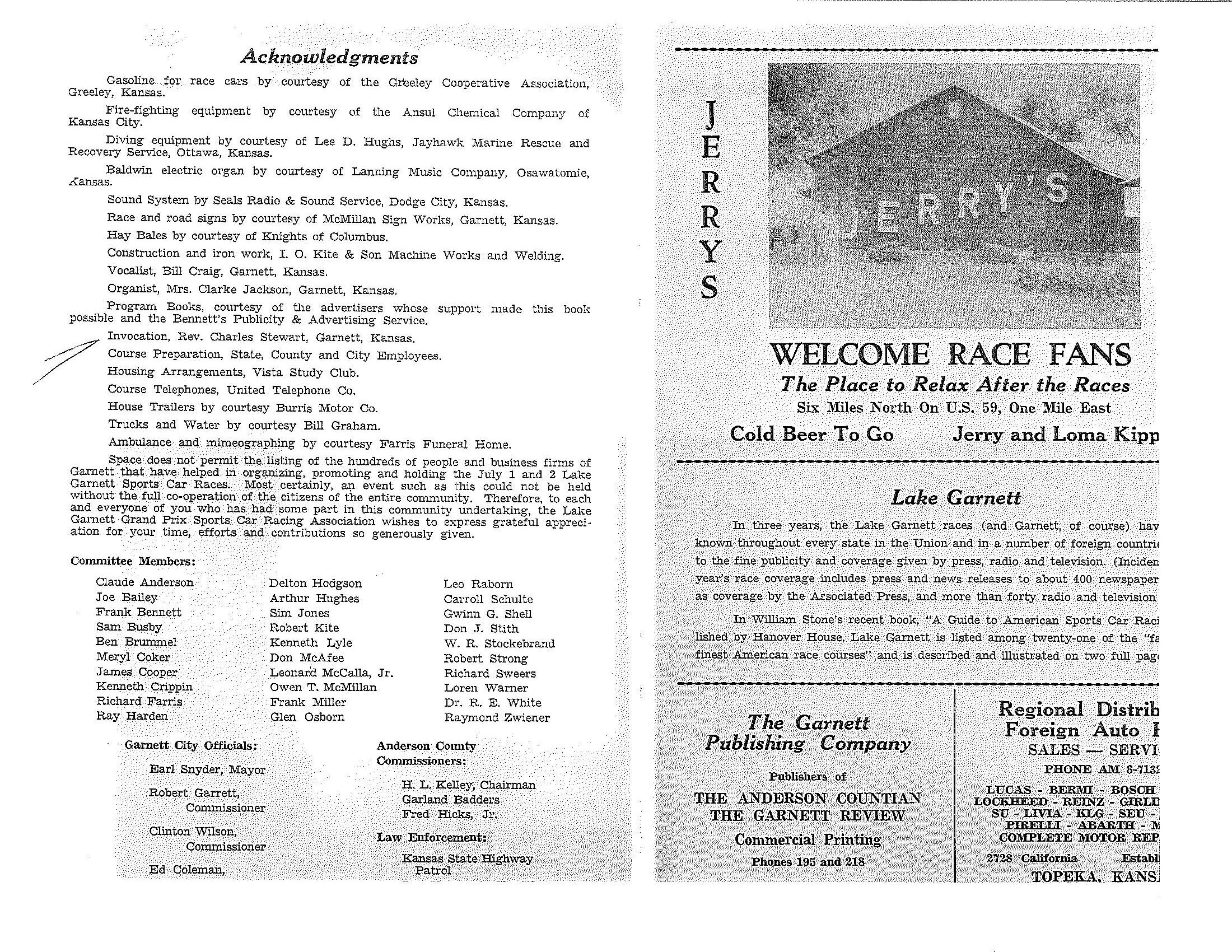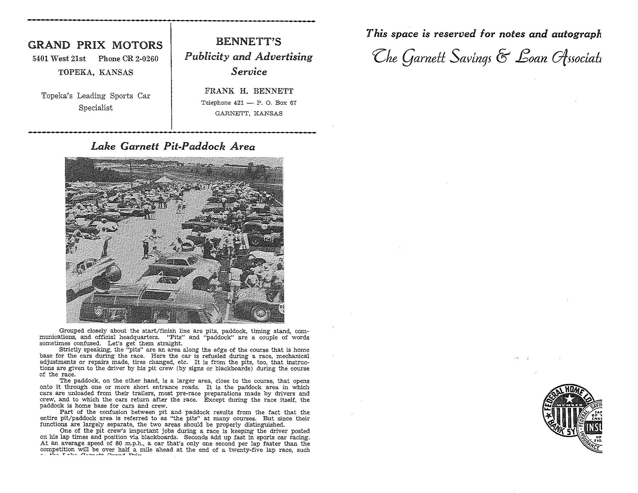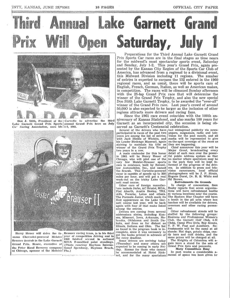 1961 Lake Garnett Grand Prix Official Program
