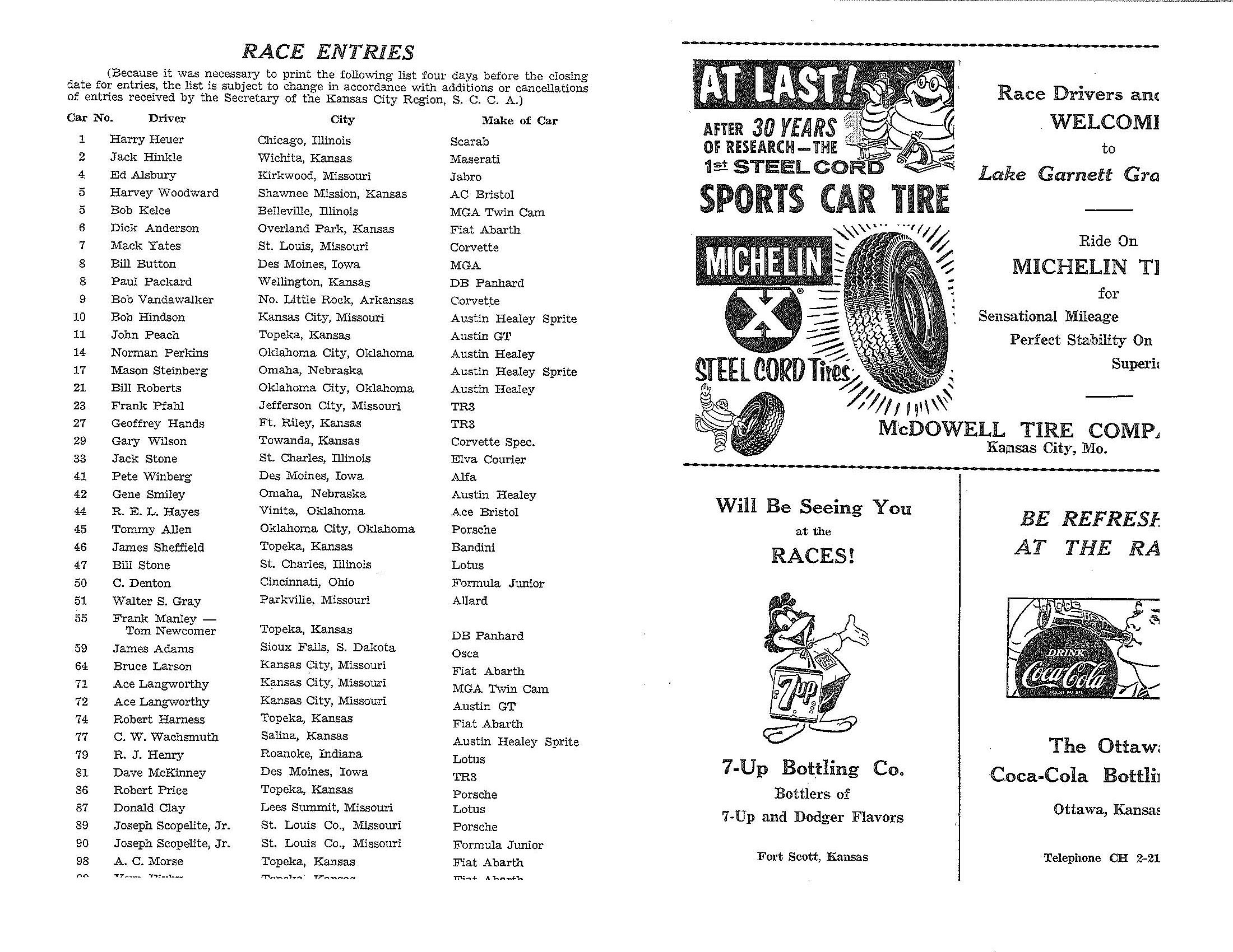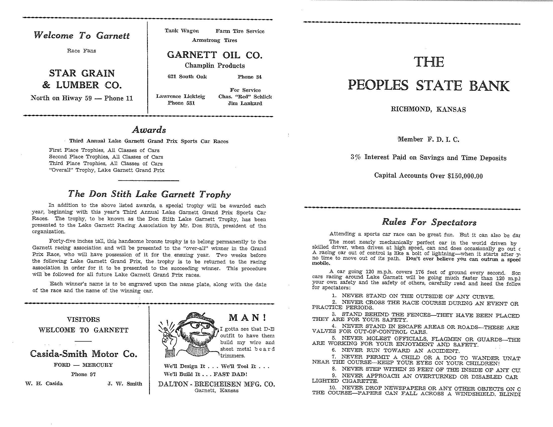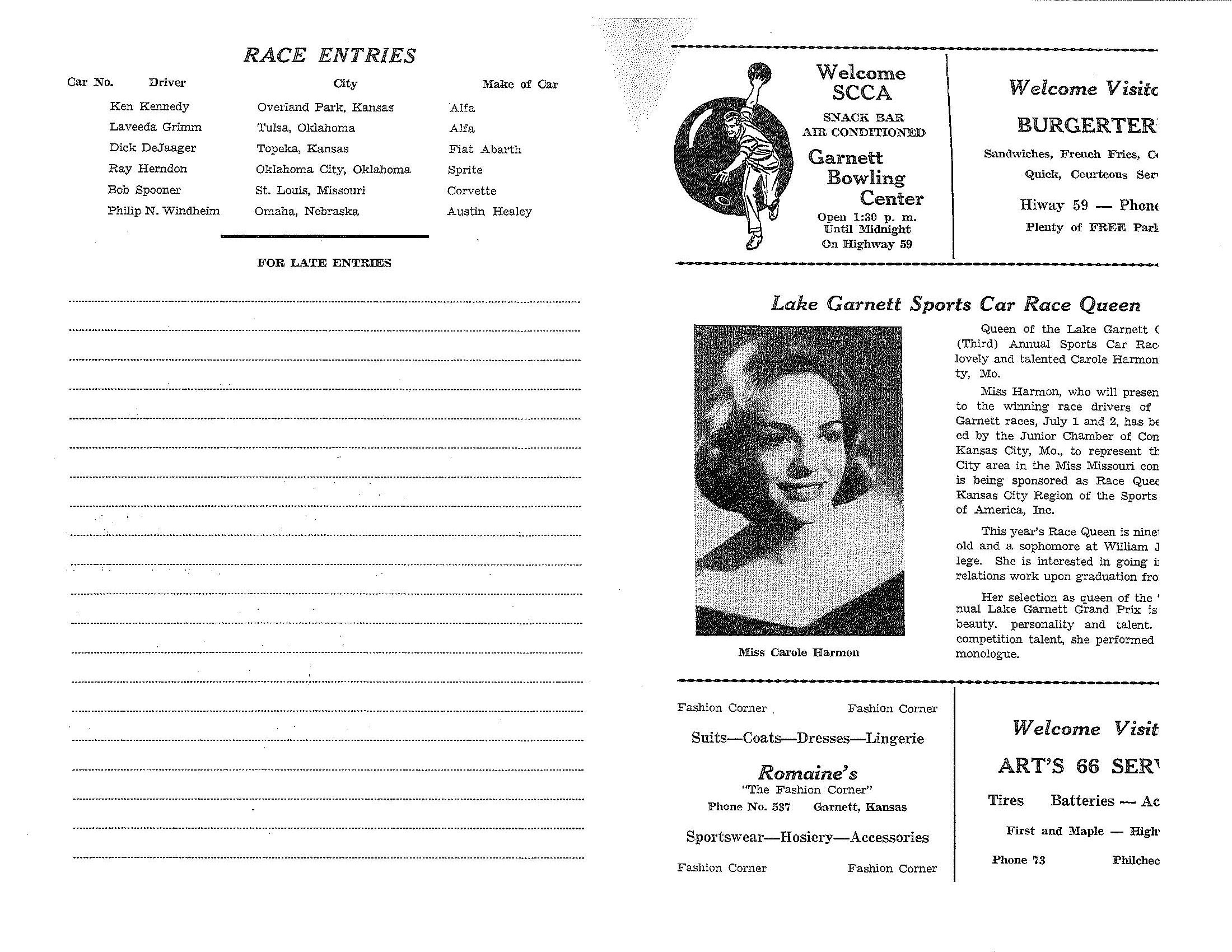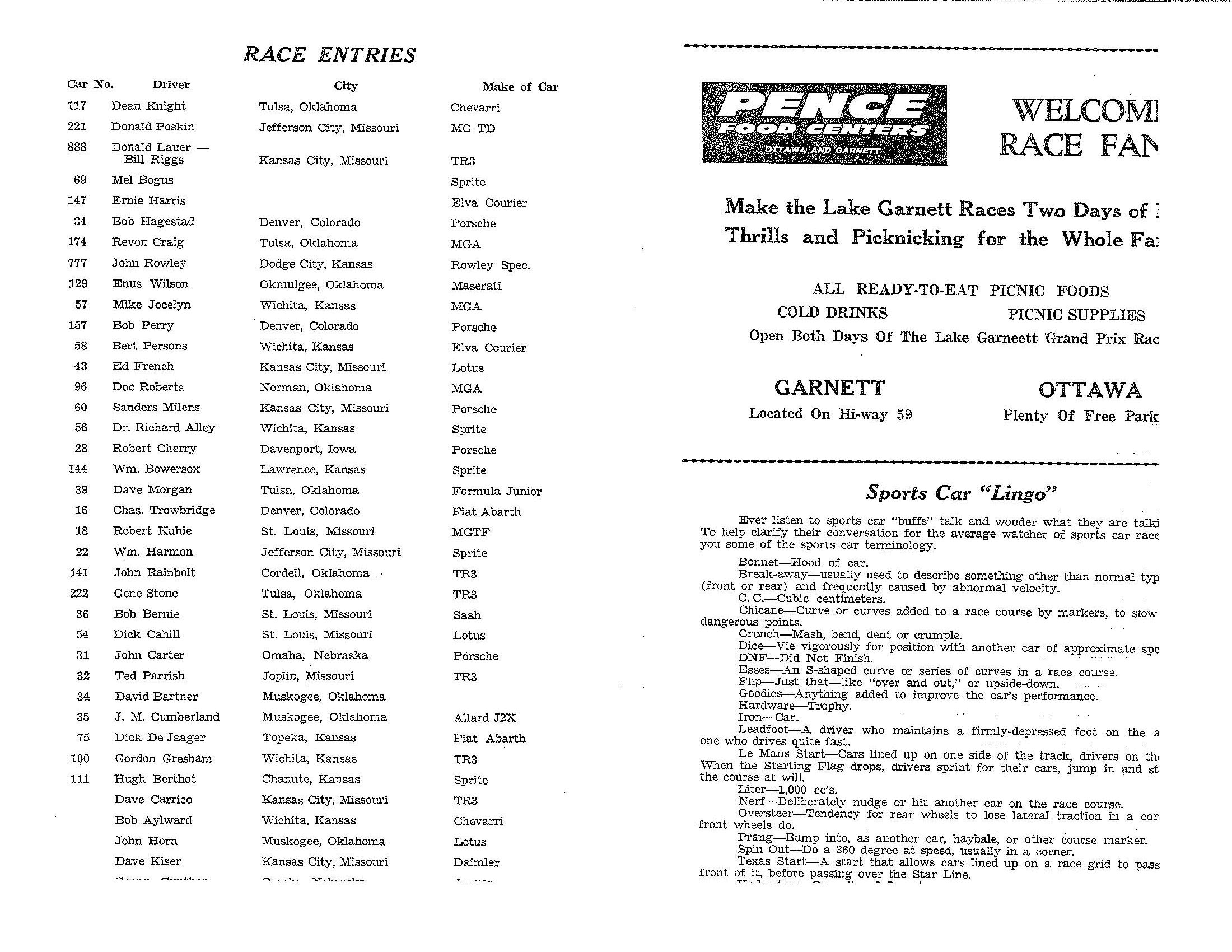 1961 Lake Garnett Grand Prix Official Program
