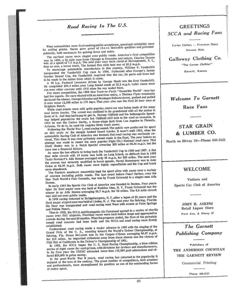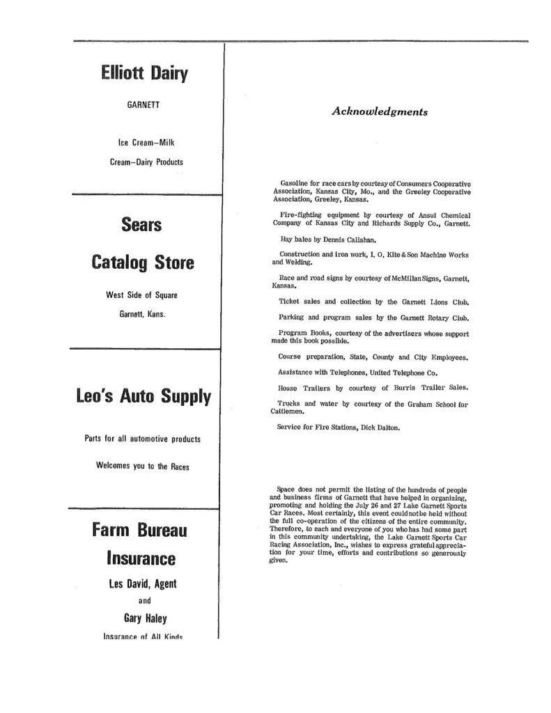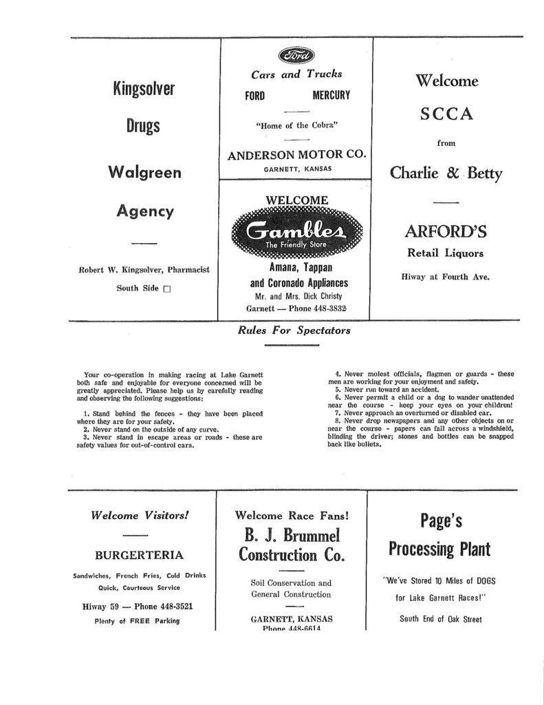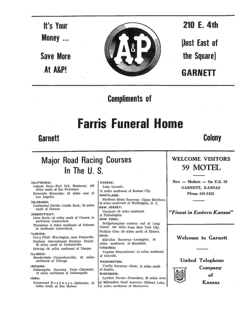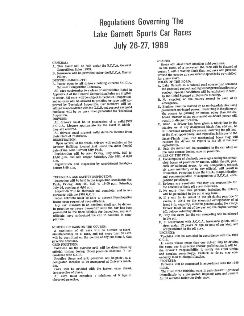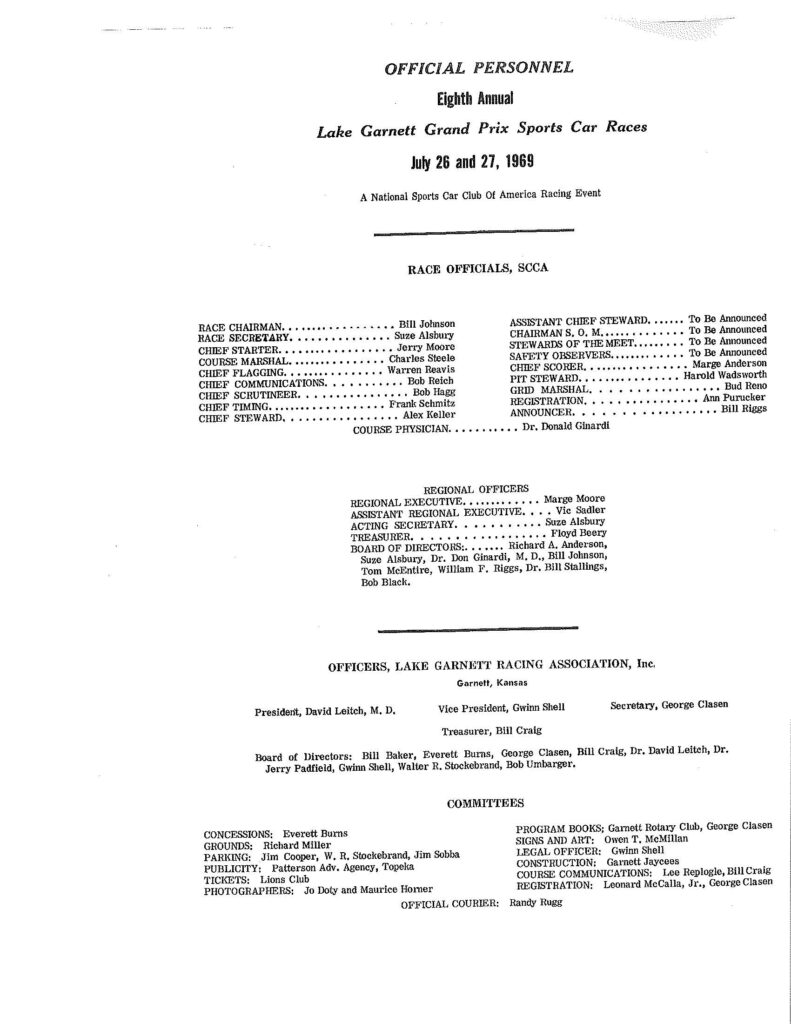 1969 Lake Garnett Grand Prix Official Program